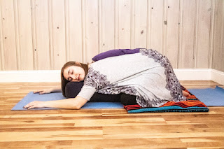 My training and practice as a yoga teacher helps me connect with others who are also craving this type of peace and permission to step away from the way they’ve always done things. My approach is slow and steady: lots of guided breath and progressive relaxation techniques, rather than powerful, heat-building movement or poses that rely on physical strength.