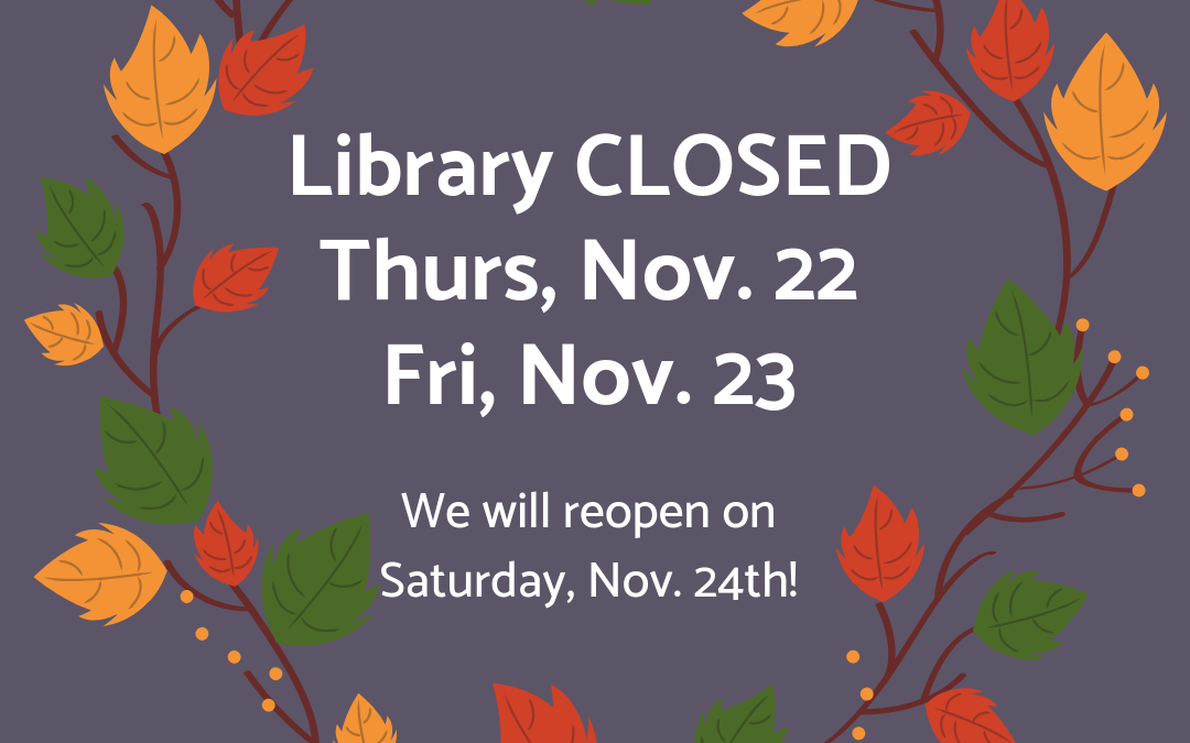 Library ClosedThurs, Nov. 22Fri, Nov. 23